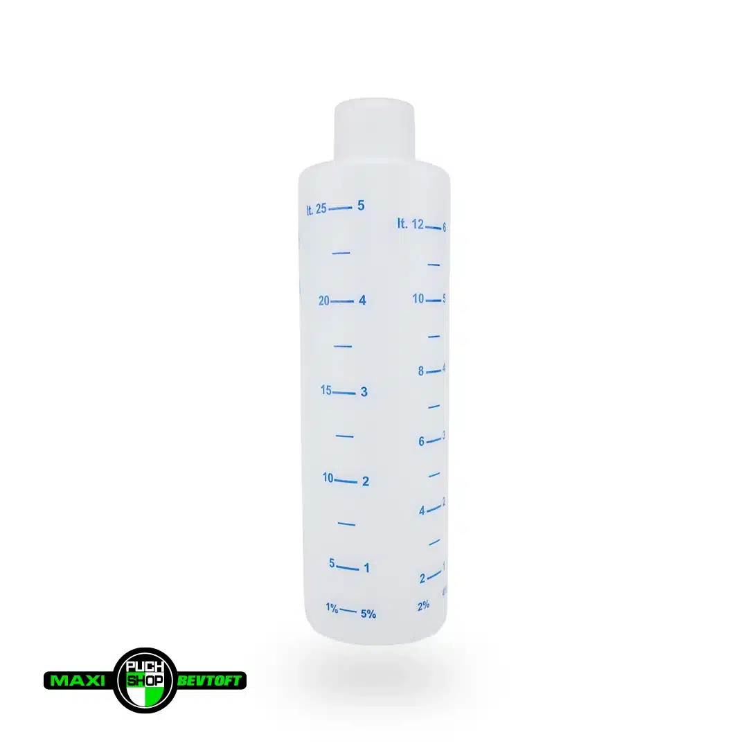Den korrekte olieblanding er afgørende for både ydelse og levetid. Med Polini-bægeret blander du hurtigt og præcist – uden gætteri og uden lommeregner.